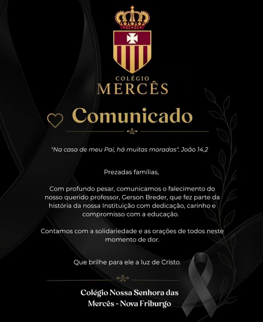 Professor Gerson Breder, além de várias escolas públicas e privadas, atuou por 39 anos no Colégio Mercês (veja nota de pesar abaixo).