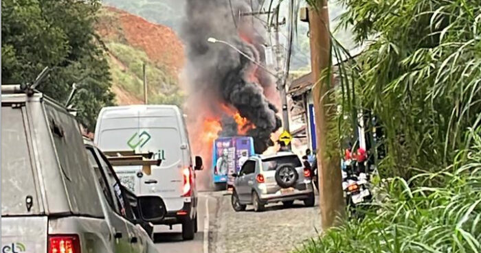 VEÍCULO DA LINHA AMPARO PEGOU FOGO; NÃO HOUVE FERIDOS –