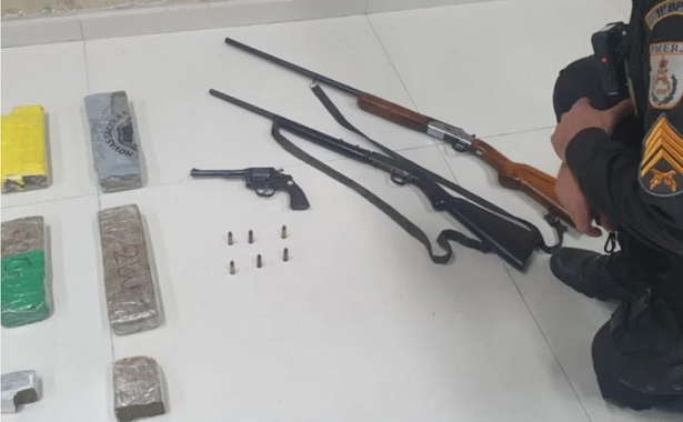 Com eles, PMs apreenderam um revólver, duas espingardas, munições e cinco quilos de maconha – em tabletes. A ocorrência foi encaminhada para a 151ª DP (Nova Friburgo).