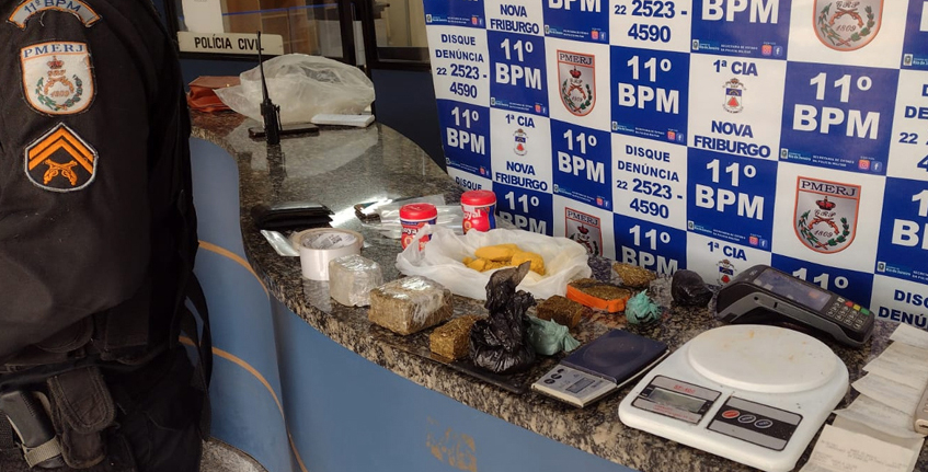 Policiais do setor Patamo do 11º BPM (Nova Friburgo) apreenderam 600 gramas de maconha e 200 gramas de pasta base de cocaína em operação contra o tráfico de drogas na Rua Cinésio Rocha, no bairro Maria Tereza. A operação foi realizada na tarde deste domingo, 31/10.
