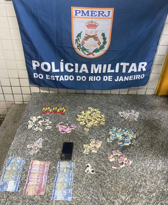 “Com base em dados de inteligência, policiais militares do 11º BPM, apreenderam entorpecentes, dinheiro e celular na Rua Francisco Nicolau, Olaria, Nova Friburgo, sábado, 22/11. Na ação, um suspeito foi detido. Ocorrência registrada na 151ª DP”, diz a postagem.