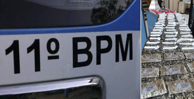 Agentes do 11º BPM (Nova Friburgo) apreenderam uma carga de drogas (cocaína e maconha) escondida numa casa abandonada no bairro Bela Vista, em Olaria. Ninguém foi preso. O material entorpecentes apreendido renderia R$ 2,640 aos traficantes.