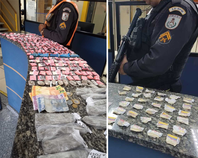 Na tarde de segunda-feira, 17/1, um dos acusados foi preso por policiais do Serviço Reservado na Rua Cândido Pardal com duas sacolas de drogas – 202 unidades de cocaína e 28 unidades de maconha.