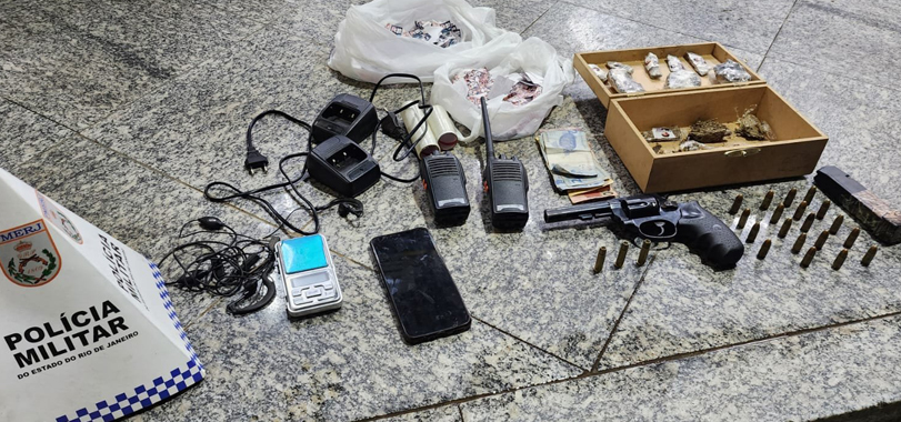 Agentes do 11º BPM (Nova Friburgo), em ação realizada nesta segunda-feira, 8/9, apreenderam um revólver, um carregador de pistola, rádios comunicadores, dinheiro em espécie e drogas no Parque das Flores, no distrito de Conselheiro Paulino. Um suspeito foi preso e conduzido para a 151ª DP.