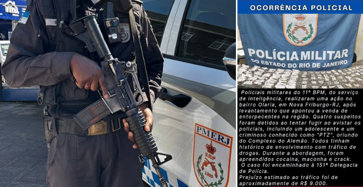 Em mais uma ação contra o tráfico de drogas, o 11º BPM (Nova Friburgo) apreendeu cerca de R$ 9 mil em entorpecentes (cocaína, crack e maconha), no final de semana, em Olaria.