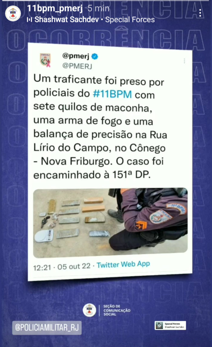 Políciais do 11º BPM (Nova Friburgo) realizaram grande apreensão de drogas na manhã desta quarta-feira, 5/10, no bairro do Cônego, durante a abordagem a um veículo particular.