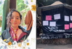 O acusado segurava uma faca ensanguentada e a sua ex-companheira foi encontrada trancada dentro do banheiro. Ela estava caída e com os braços amarrados e com muitas lesões visíveis de golpes de faca.