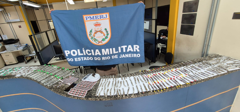 Agentes do 11º BPM e da 151ª DP apreenderam uma carga de drogas avaliada em R$ 12 mil, num imóvel residencial entre os distritos de Conselheiro Paulino e Riograndina.