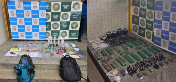 A operação conjunta culminou com a apreensão de mais de 20 quilos de maconha, além de estoque de haxixe, skank, pasta base de cocaína, e ainda balanças de precisão e material de endolação.