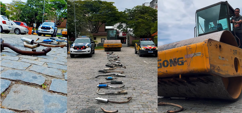 Os canos de descarga foram apreendidos recentemente em operações de trânsito envolvendo o governo municipal em parceria com as polícias Civil e Militar. O ato simbólico de destruição dos equipamentos foi realizado no pátio da Prefeitura.