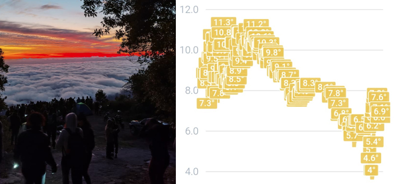 Após registrar o congelamento de água na guarita de acesso ao Pico da Caledônia sábado, 3/5, a temperatura voltou a ficar baixa nesta segunda-feira, 5/5 num dos principais pontos turísticos (e dos aventureiros) em Nova Friburgo: apenas quatro graus.