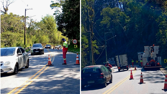 Durante os trabalhos, o tráfego funciona em sistema de Pare e Siga, podendo ocorrer pequenas retenções.