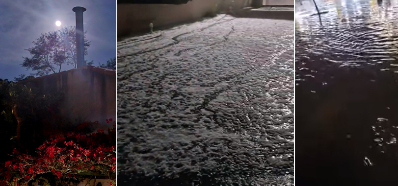O início da noite de 8/8 no município foi de extremos: começou com uma lua cheia no céu, bela e brilhante e, pouco depois, um rápido temporal de granizo, com muitos raios e trovões.