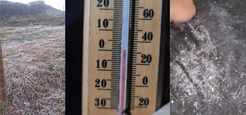 Agricultores da localidade rural registraram o termômetro doméstico marcando 0ºC e forte geada.
