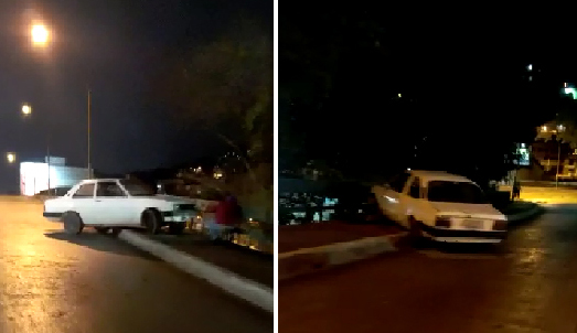 Susto! Um Chevette se envolveu em acidente na noite deste domingo, 2/10, no Viaduto Geremias Mattos Fontes, sentido Bairro Ypu / Paissandu.