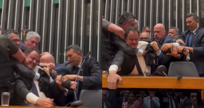 “Eu quero me solidarizar com a imprensa também que foi agredida e que teve o seu trabalho cerceado. Eu estou aqui há bastante tempo, há algum tempo pelo menos. Até hoje não tinha ouvido falar de cortarem o sinal da TV Câmara para que as pessoas não acompanhassem o que estava acontecendo dentro do plenário. A única coisa que eu pedi ao presidente da Câmara, Hugo Motta, foi que ele tivesse 1% do tratamento para comigo que teve com aqueles que sequestraram a mesa diretora da Câmara por 48 horas por dois dias em associação com um deputado que está nos Estados Unidos conspirando contra o nosso país”, afirmou Braga após ser retirado.
