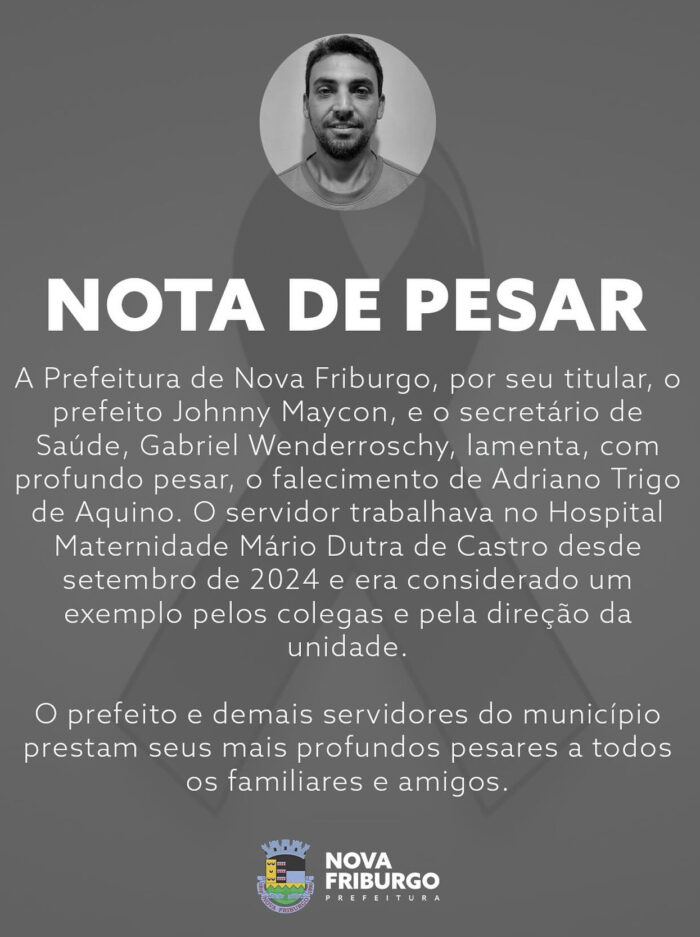 A Prefeitura de Nova Friburgo, através de suas redes sociais, lamentou com profundo pesar, o falecimento de Adriano Trigo de Aquino. Ele era o condutor da moto no acidente ocorrido na RJ-116.