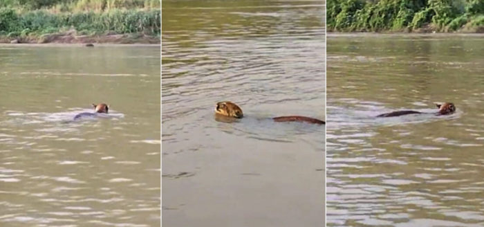 Um lindo registro! Uma onça-parda foi flagrada atravessando o Rio Paraíba do Sul, na localidade de Porto Marinho, entre Itaocara e Cantagalo, interior do Rio de Janeiro.