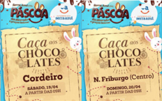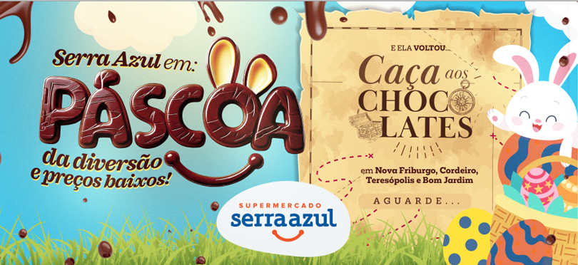 A Páscoa está chegando e para comemorar esta data tão especial, a rede de Supermercados Serra Azul está promovendo a volta da Caça ao Chocolate nas cidades onde o grupo possui lojas.