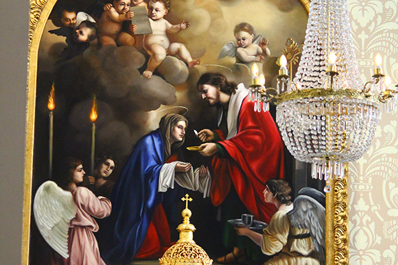 Antes de se despedir deixou à comunidade um presente: a imagem da Virgem Maria comungando das mãos de São João Evangelista, o Discípulo Amado, afixada em mural na Capela do Santíssimo, manifestando seu amor filial à Virgem, Mãe de Deus.