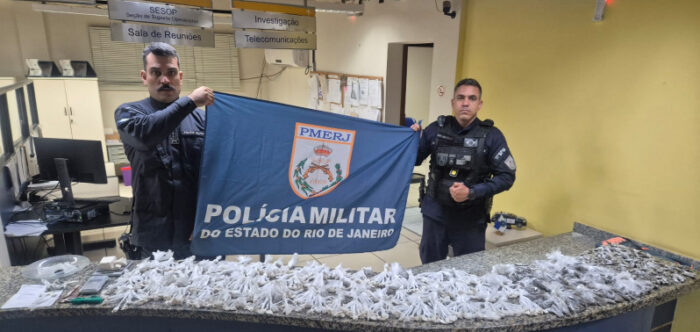 Policiais militares do 11º BPM (Nova Friburgo) realizaram uma ação em resposta a uma denúncia de tráfico de drogas na Rua do Cemitério, em Santa Rita da Floresta, Cantagalo/RJ, na noite de terça-feira, 6/1. Quatro indivíduos foram capturados e aproximadamente R$ 47 mil em entorpecentes foram apreendidos pelos policiais.