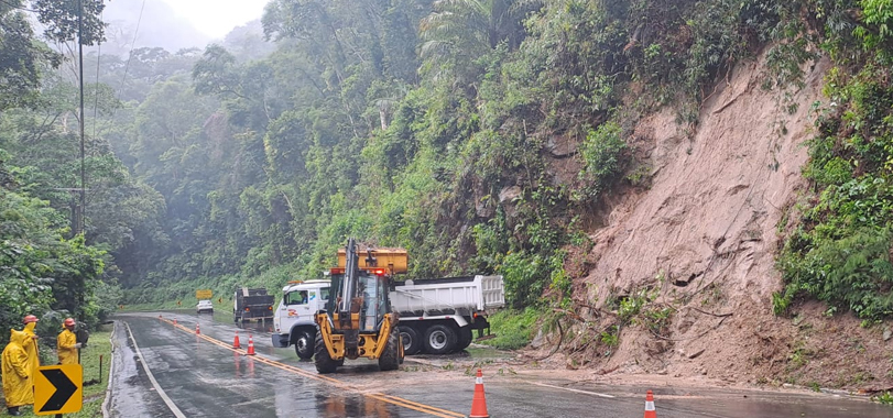Equipes operacionais da Rota já estiveram atundo também nos locais de quedas de barreira, realizando a retirada do material e a limpeza da pista, atuando para garantir a segurança e a normalização do tráfego.