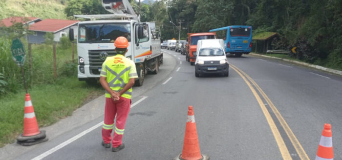 Por conta da execução dos trabalhos – visando garantir a segurança de motoristas e colaboradores – o tráfego no trecho está operando no sistema de Pare e Siga, com a utilização de cones e sinalização especial.