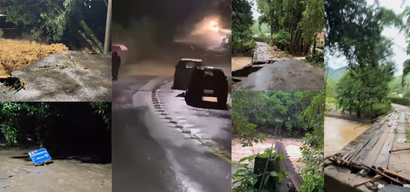 As imagens que viralizaram nas redes sociais mostram destruição de pontes, queda de barreiras em estradas, casas alagadas e outros problemas em Sana.