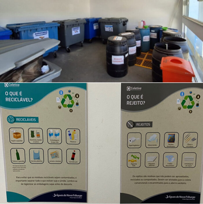 Entre as ações implantadas estão a instalação de lixeiras específicas para recicláveis, orgânicos e rejeitos em todos os setores da sede administrativa, além da eliminação de copos descartáveis e a construção de um novo Ecoponto. Próximo aos coletores, foram desenvolvidas placas educativas com orientações claras sobre a separação correta dos materiais. A concessionária também instalou secadores de mão nos banheiros, diminuindo significativamente o consumo diário de papel toalha.