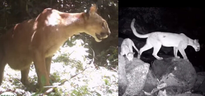 Em mais um vídeo espetacular do Projeto Aventura Animal, que acompanha a vida selvagem na Mata Atlântica da Serra RJ, câmeras de monitoramento mostra uma onça-parda (Puma Concolor) no estágio de gravidez e, posteriormente, mais recentemente, acompanhada do filhote no perímetro da Regua – Reserva Ecológica de Guapiaçu.