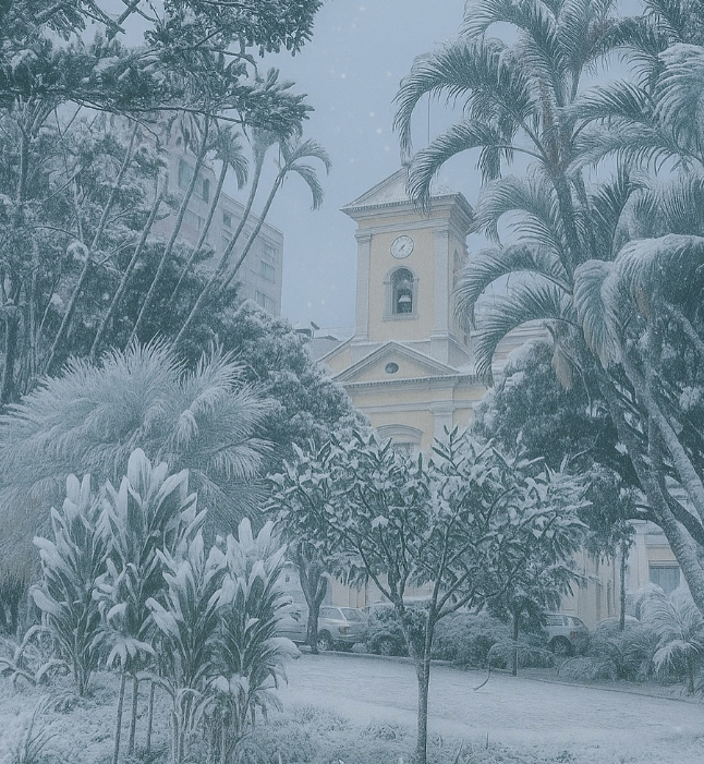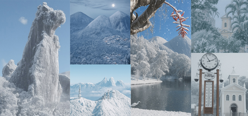 Em tempos de tecnologia, filtros e, claro, criatividade, a página Siga Friburgo, no Instagram, fez uma brincadeirinha com o tradicional frio do outono e inverno friburguense: E se nevasse em Nova Friburgo?