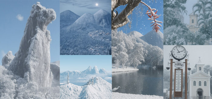 Através de fotos originais de Laura Botelho, o Siga Friburgo simulou neve em pontos conhecidos do município transformando-os em, digamos, alpes da Suíça Brasileira.