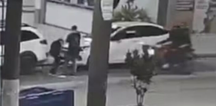 O crime foi flagrado por câmeras de segurança e foi praticado por dois homens em um motocicleta. O que estava na garupa efetuou os disparos na cabeça da vítima.