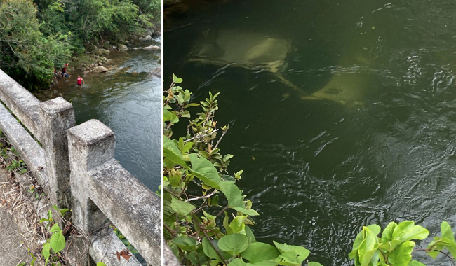 Em pouco mais de dois dias, dois carros caíram da Ponte Santa Luzia dentro do Rio Macaé, na RJ-142 (Estrada Serramar), na divisa de Nova Friburgo e Casimiro de Abreu.