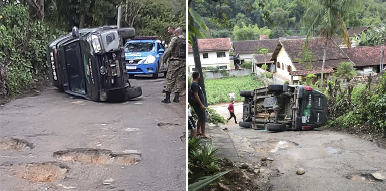 As imagens do acidente, divulgadas nas redes sociais, mostram ainda o péssimo estado de conservação da via pública, cheia de buracos e crateras.